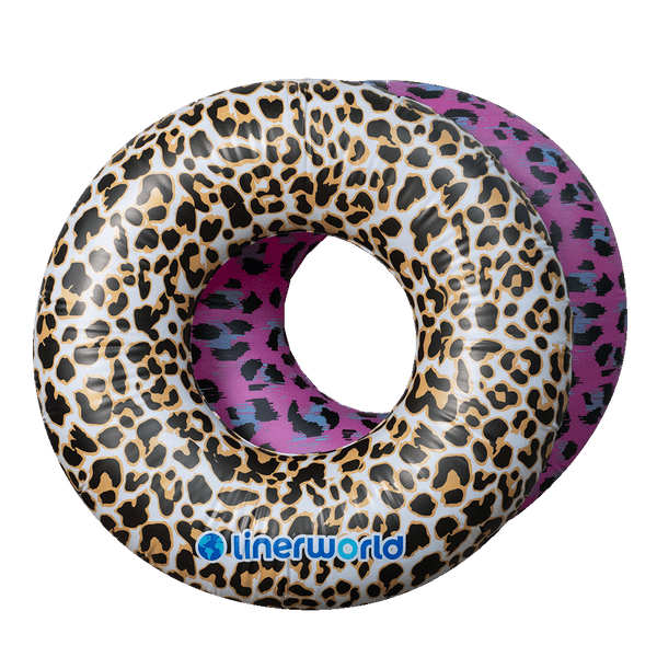Show your WILD side with LinerWorld's leopard swim rings! Chose from Pink or Tan leopard print. Both colors feature the LinerWorld Logo.